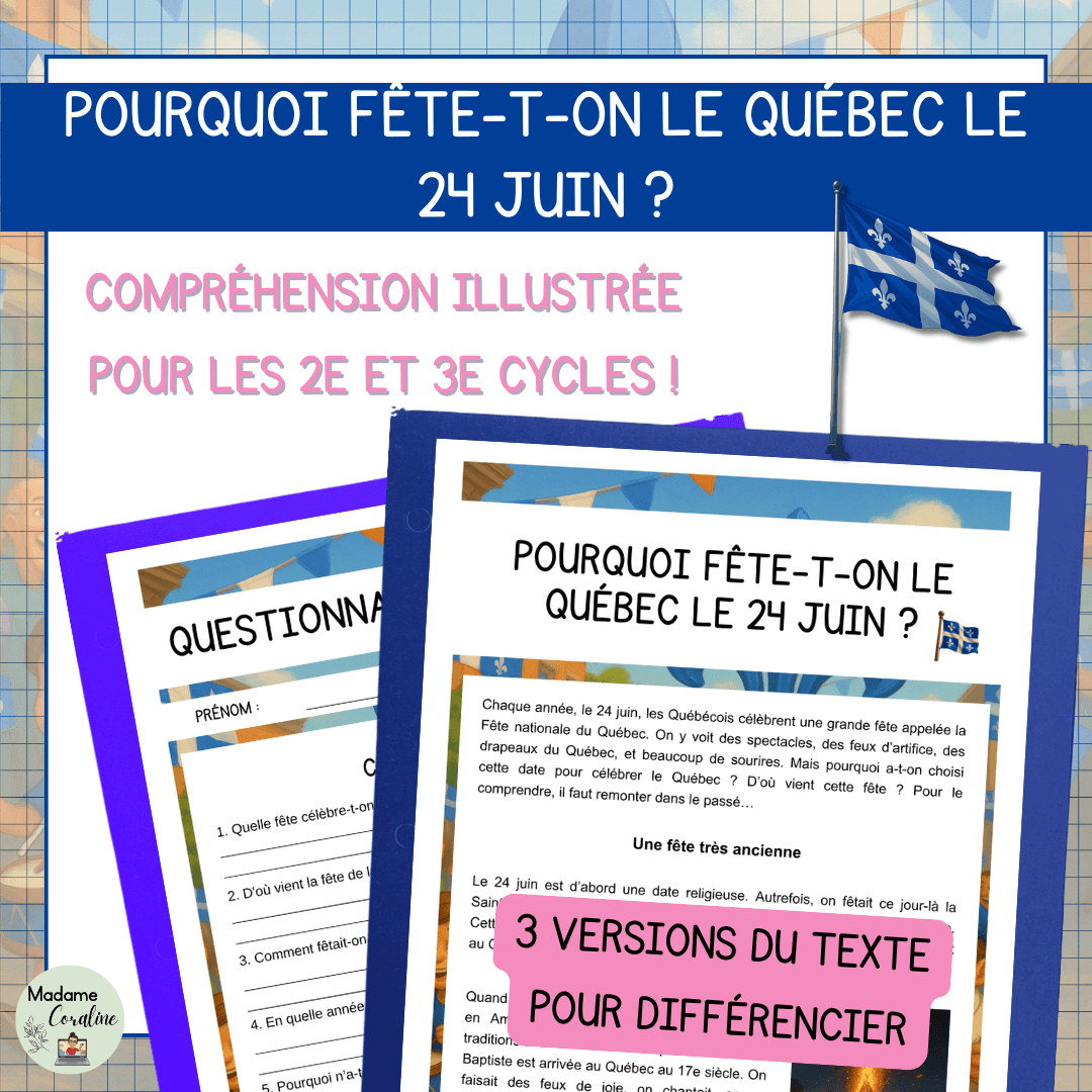 Fête Nationale du Québec – Compréhension de lecture – Pourquoi fête-t-on le Québec le 24 juin ?