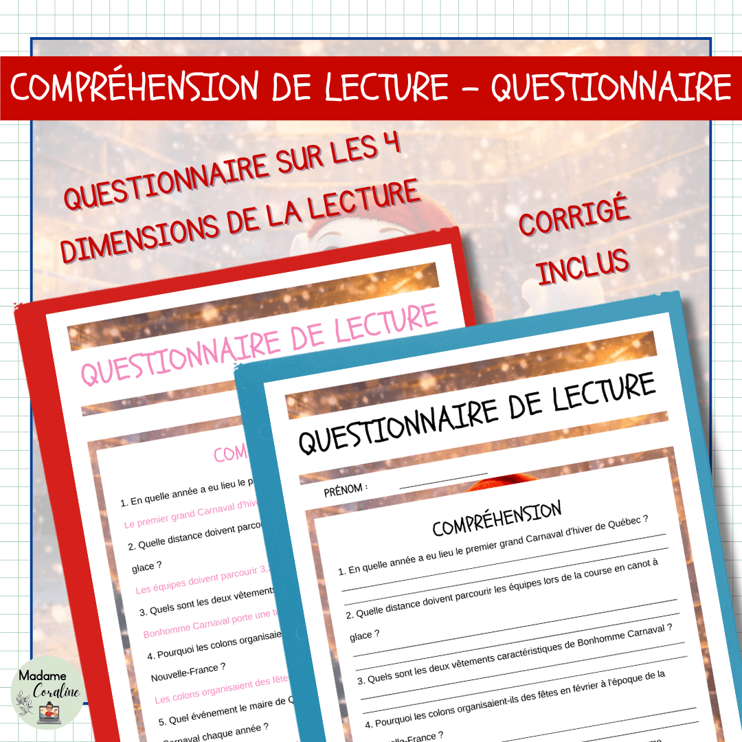 Compréhension de lecture sur le Carnaval de Québec - Plus grand festival d'hiver | 3 niveaux différenciés