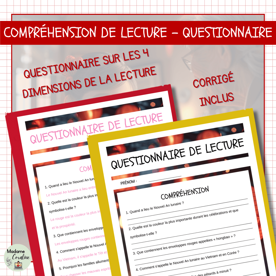 Offre à tes élèves une immersion culturelle captivante dans les célébrations du Nouvel An lunaire --- du Festival du Printemps en Chine au Têt vietnamien et au Seollal coréen. Ce texte informatif différencié explore le calendrier lunaire, les préparatifs symboliques, les rituels festifs et les traditions propres à chaque pays, pour les élèves du 2e cycle, du 3e cycle et du secondaire 1.