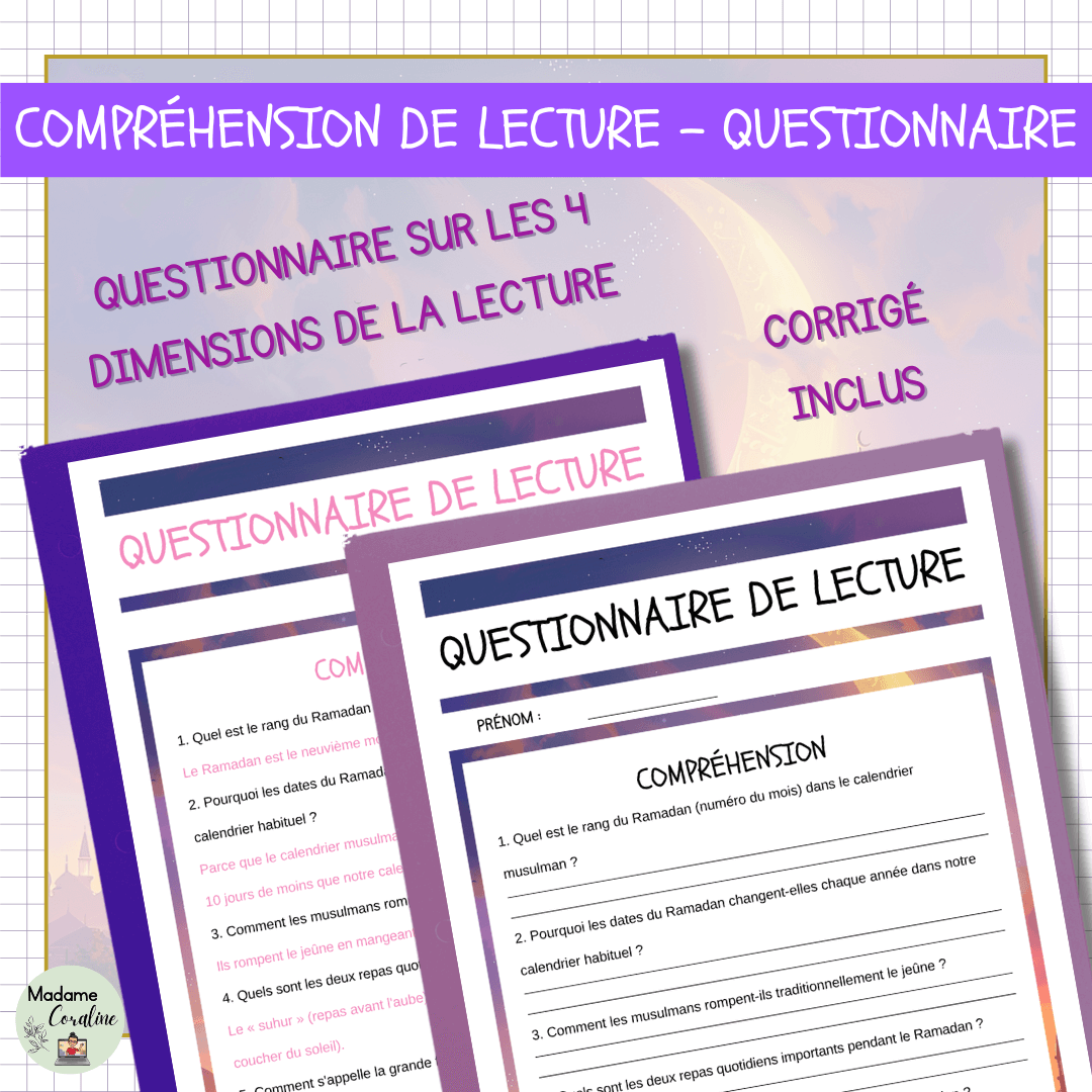 Compréhension de lecture sur le Ramadan - Mois sacré de l'islam | 3 niveaux différenciés