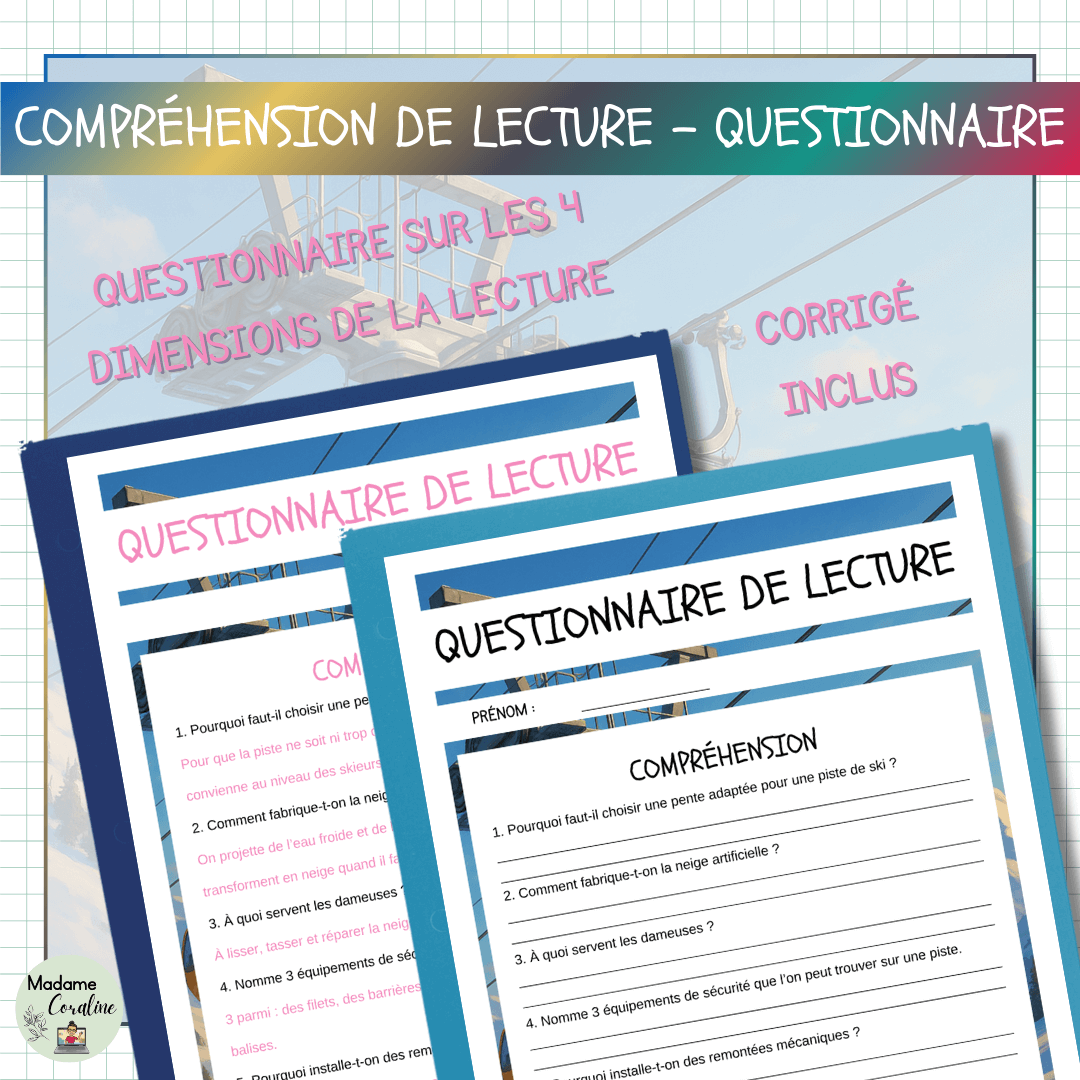 • 1 questionnaire de lecture complet (4 dimensions)