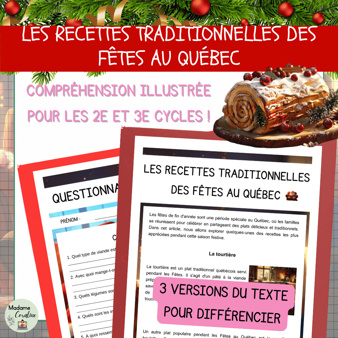 Compréhension de lecture – Noël – Les recettes traditionnelles des Fêtes au Québec